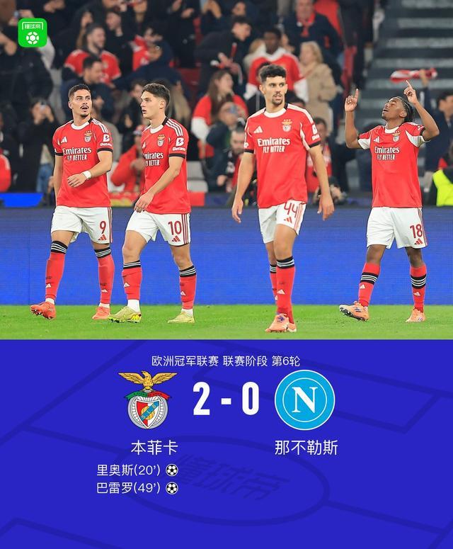 本菲卡2-0那不勒斯,里奥斯传射,巴雷罗破门